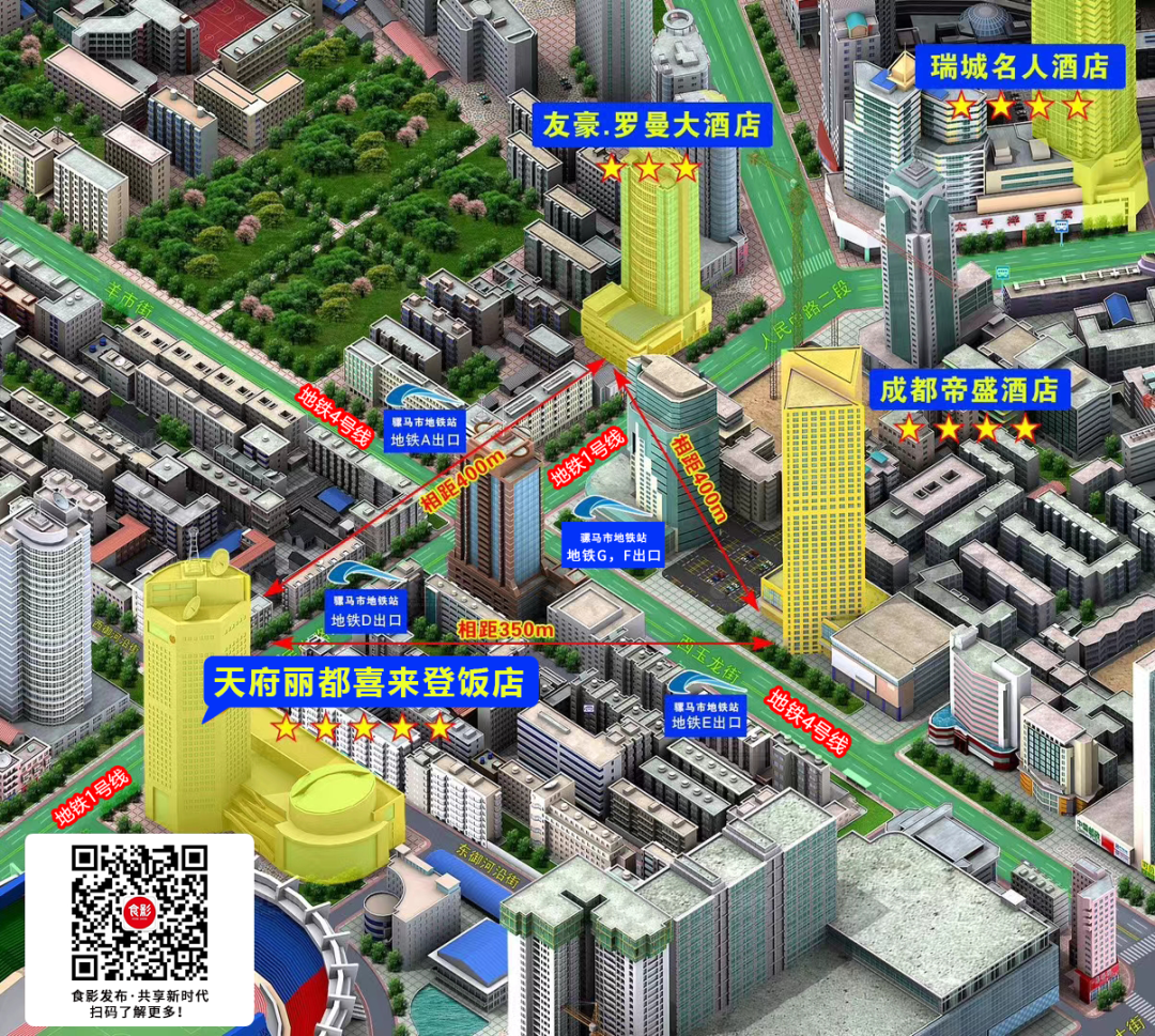 位于繁华地段,交通方便。喜来登天府丽都饭店坐落于骡马市商圈的“春糖之心”位置,地铁1号线/4号线骡马市站D口就在酒店旁,出站即可到达,地理位置优越。饭店内设有占地6000多平方米的展厅,可同时容纳500多家企业展示。